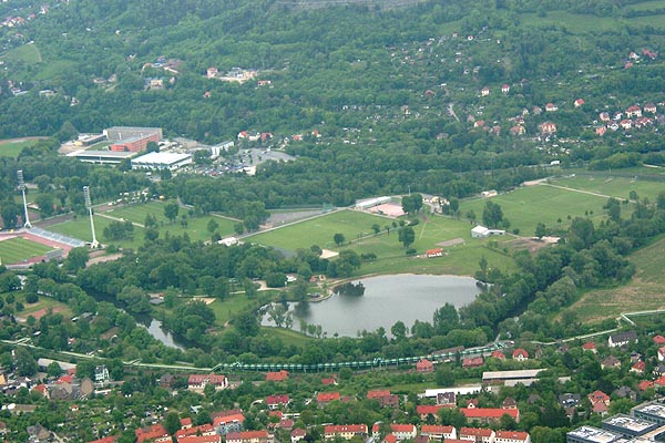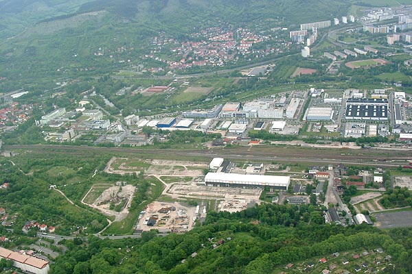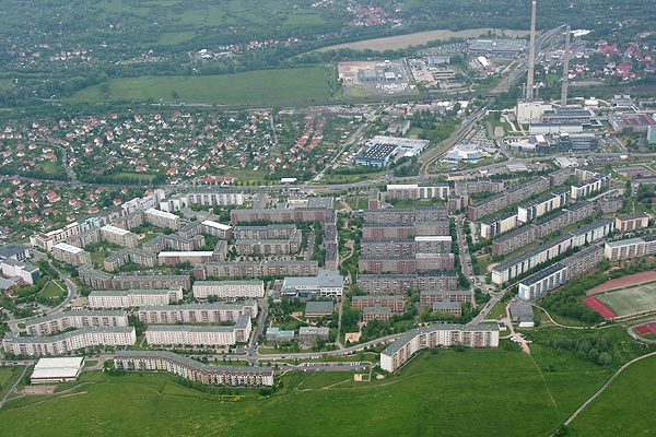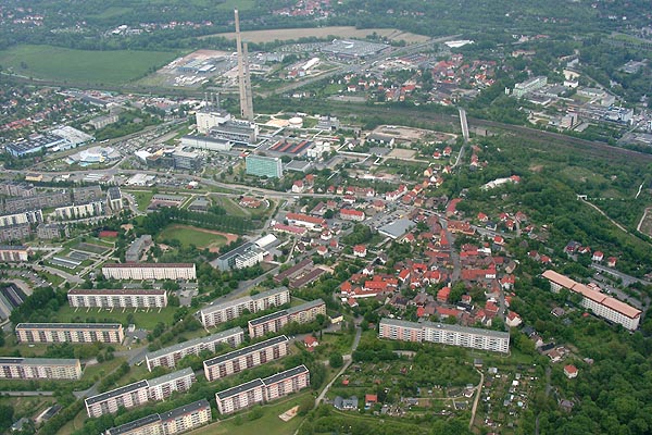 Jena-Winzerla mit Heizkraftwerk und Burgau